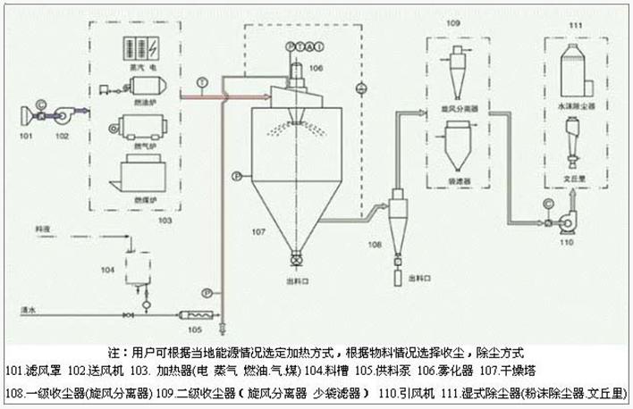 高速離心噴霧干燥機是液體成形工藝和干燥工業中廣泛應用的工藝。適用于從懸乳液、溶液、乳液和糊狀液體原料中生產粉狀、顆粒狀固體產品。因此,當成品的顆粒大小分布、殘留水份含量、堆積密度和顆粒形狀都符合精確的標準時,噴霧干燥機是十分理想的干燥工藝。